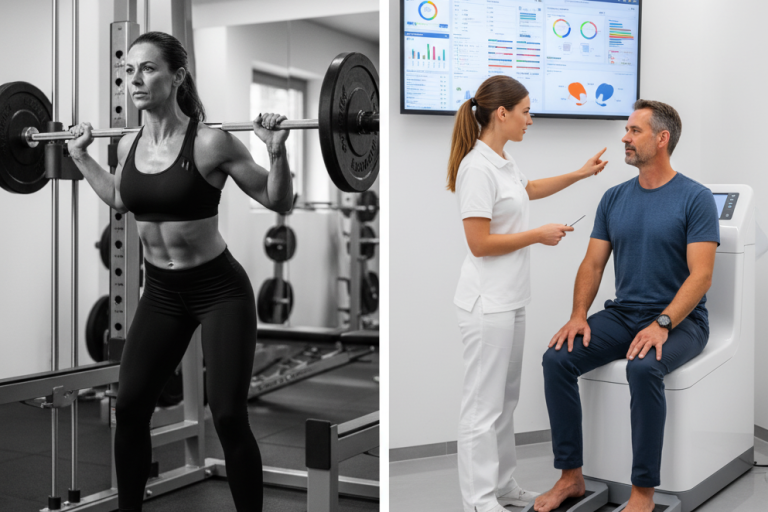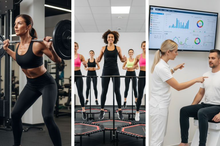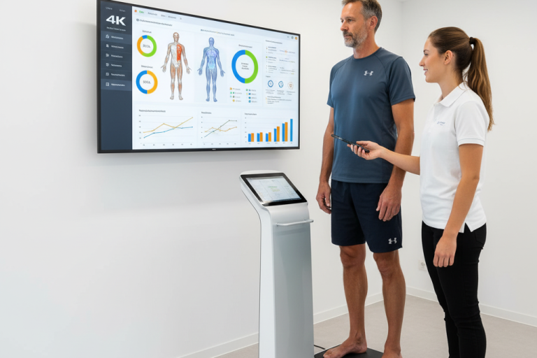 - Körperzusammensetzungsanalyse (Körperfett, Muskelmasse, Wasserhaushalt, Proteinmenge)