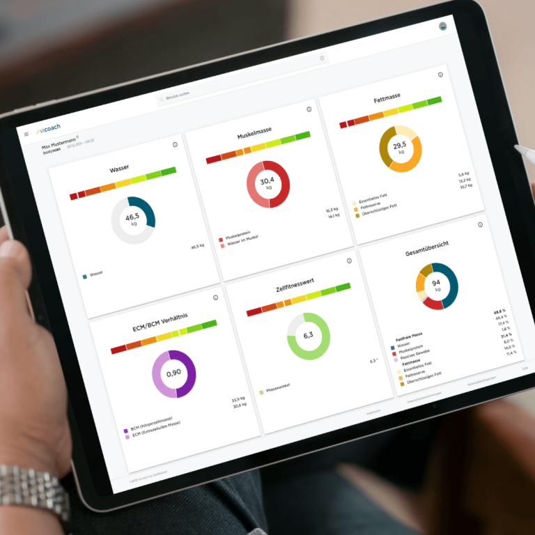 In wenigen Sekunden erhalten wir die detaillierte Aufschlüsselung Ihrer Körperstruktur, deutlich präziser als jede Waage.